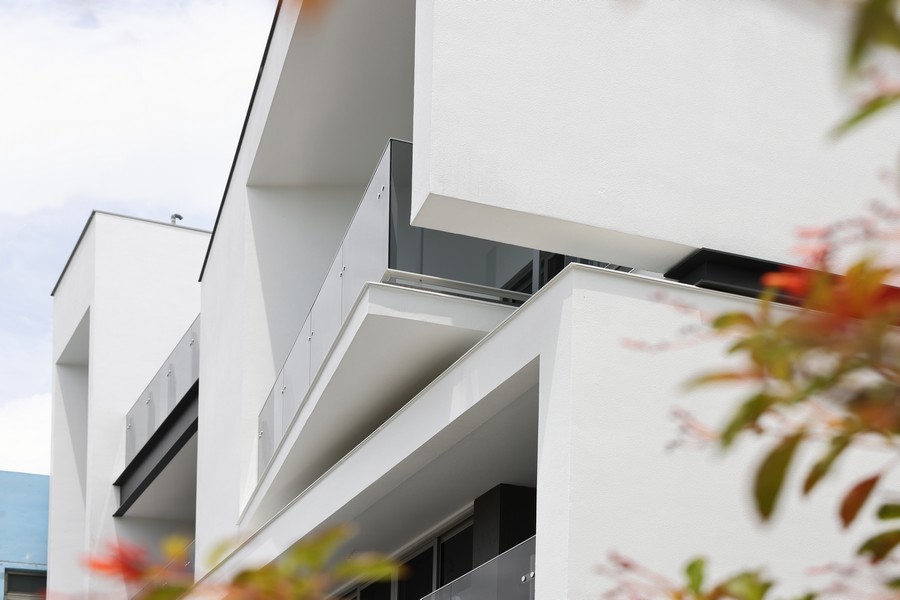 建築面對現有的巷道,四戶的外觀不僅充滿活力,還帶有動感。斜面設計賦予建築獨特的動態感。每戶住宅的外觀都各具特色,誰說連棟透天一定要每戶都一樣呢?每一戶的設計都有自己的獨特性,也展現我們對造型的追求。建築自然流露出輕盈與優雅,滴水板、陽台收邊鋼槽、子彈型格柵的運用,讓整體外觀更顯輕薄精緻。我們相信,建築不僅是空間的塑造,更是一場探索與發現的旅程,從輪廓到細節,每一處都帶來視覺上的驚喜。
