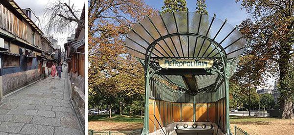 ▲鴨川西側巷弄景觀。 ▲巴黎新藝術風格地鐵站出口涼亭。