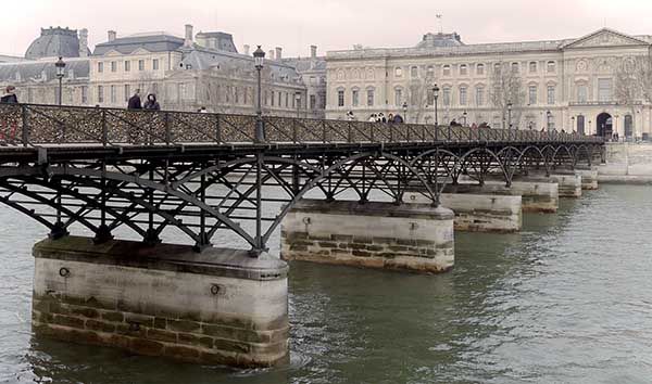 藝術橋是何來歷?其乃巴黎塞納河上一座人行橋,連接法蘭西學會和羅浮宮中央廣場,建成於1801年,與巴黎鐵塔被視為見證花都繁華年代之地標。這九拱圈構成橋體的金屬人行橋是巴黎第一座金屬橋梁。橋兩側還設有植栽及座椅,成為城市一新景觀樣態。不過,現存藝術橋乃重建之作:由於原橋體結構問題,結構而後由九拱減為七拱,於1981至1984年間完成重建。1984年7月由時任職市長的席哈克所揭幕。或因此,席哈克特別熱衷於輸出藝術橋促進文化外交。