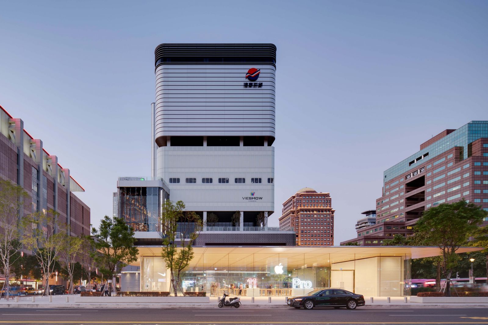 基地四周、露台及南側廣場綠意遍佈,為信義計畫區高密度的都會空間留設悠閒的自然休息場所。南側廣場臨松壽路側由Apple旗艦店進駐,亦代表此百貨商場著重新興科技趨勢,並創造國際級購物中心之理念及實踐。