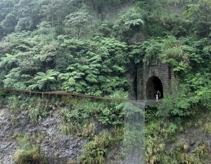 因此當設計團隊踏入基地,面對的是一個生氣勃發的環境。我們經歷多次且多角度探勘,試圖瞭解在基地發生的一切,包含生態、隧道結構、地質、人文背景、既有和未來規劃的路徑等全面向的議題;我們利用光達測量、透地雷達、地球物理探測等非接觸性技術瞭解敏感的隧道拱壁內襯與崖壁岩盤狀況,以保留環境原來的風貌;同時在規劃過程的每一步,都透過歷史、生態、水土保持、結構、景觀等跨領域專業共同合作的Workshop模式,逐漸推展出一個對環境綜整性的規劃,以回應到各尺度的空間議題。