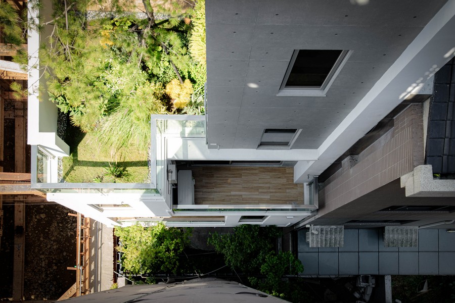 家不僅是一座堡壘,同時也是城市面貌構成的一環。大面積 開窗與半戶外空間的運用,讓屋主可以從室內的角度去感受窗 外陽光投射的各種風貌,使建築本身與屋內的日常運行融入城 市的街景中,亦成為路人想像與感受生活的另一種可能性。