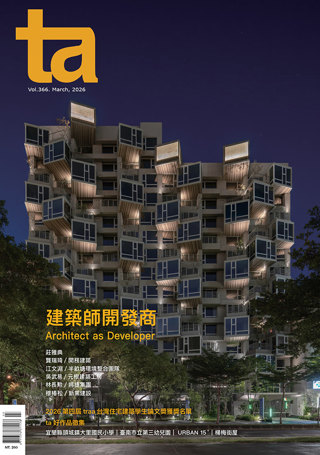建築師轉型開發商是一條將專業理想與商業實踐深度結合的道路。早期雖有建築師嘗試開發卻多以失敗收場,在今天 則似乎有所轉變。本期感謝莊雅典建築師的籌劃,很高興看到多位成功整合開發商角色的建築師,他們不僅從生活出 發、控制建築品質,更進一步在聚落創生、社會責任、生態開發與安頓身心上做出貢獻,將整套〈空間哲學 × 商業模 式 × 社群定位〉整合。建築師決定空間的「形式」,開發商擁有決定建築命運的「資本」,而真正塑造城市的,往往不是設計能力,而是資本如何想像未來,或許建築師兼任開發商,更能為都市與社會帶來各個角度正向的發展。